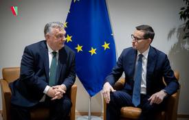 A volt lengyel kormányfő Orbán Viktor miniszterelnökkel és Fabrice Leggerivel, az EU határvédelmi ügynöksége, a Frontex korábbi vezetőjével, a francia jobboldali Nemzeti Tömörülés (RN) párt EP-listavezetőjével az Európai Parlamentben tartott nyilvános beszélgetést.