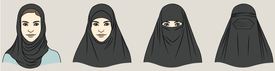 Balról jobbra: hidzsáb, csador, nikáb és burka