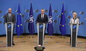 Jens Stoltenberg NATO-főtitkár, Ursula Von der Leyen, az Európai Bizottság, és Charles Michel az Európai Tanács elnöke, csütörtök délutáni közös brüsszeli sajtótájékoztatóján együttesen ítélte el az Ukrajna elleni orosz hadműveletet.