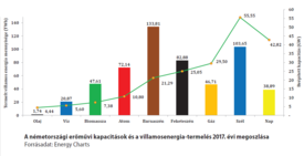 2017-ben a német erőművek beépített összteljesítménye 202,43 GW volt, a villamosenergia-ellátásban az össztermelésük pedig nettó 548 TWh-t ért el. A nap- és szélerőművek a beépített összteljesítmény csaknem 49 százalékát adták, ám az összes villamosenergia-termelésnek csupán 26 százalékát biztosították. Az időjárásfüggő megújulóknál tehát nem a beépített kapacitás a mérvadó, hanem az, hogy mennyi villamos energiát termelnek ténylegesen.