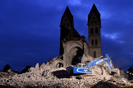 A St. Lambertus-templom lerombolása (Fotó: MTI)