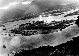 A Pearl Harbor fölötti égen 7 óra 49 perckor japán repülők tömege jelent meg, amelyek bombákat szórtak az öbölben horgonyzó hajókra, nem sokkal később megérkezett a támadók második hulláma is. Nyolc óra tíz perckor egy bomba az Arizona csatahajó lőszerraktárában robbant fel, a hajó ezer tengerésszel a fedélzetén süllyedt el. Nem sokkal később egy torpedó az Oklahoma csatahajót találta telibe, amely négyszáz emberrel merült el percek alatt.