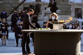 Hivatalos állami gyászszertartáson búcsúztatták a koronavírus járvány több tízezer halálos áldozatát a spanyol fővárosban csütörtökön.