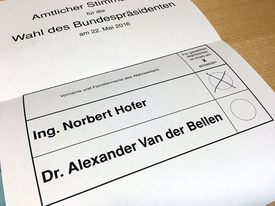 A május 22-i választáson szoros küzdelemben Alexander Van der Bellen, a Zöldek által támogatott független államfőjelölt nyert, a voksok 50,35 százalékát szerezve meg. Az Osztrák Szabadságpárt (FPÖ) jelöltjét, Norbert Hofert a szavazásra jogosultak 49,65 százaléka támogatta. Van der Bellen alig több mint 31 ezer szavazattal előzte meg Hofert. A második fordulót azonban az alkotmánybíróság határozata értelmében meg kell ismételni, mivel a bírák helybenhagyták a szavazatszámlálás érvényességét kétségbe vonó, szabadságpárti beadványt. Az államfőválasztás megismételt második fordulóját október 2-án tartják.