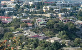 Sztyepanakert, azeri nyelven Khankendi, az Azerbajdzsánhoz tartozó, de egyoldalúan kikiáltott, örmények lakta Hegyi-Karabah Köztársaság eddigi fõvárosa 2023. október 2-án.