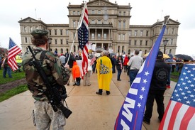 Michigan fővárosában, Lansingben, az állam törvényhozásának épülete előtt fegyveres tüntetők követelték a koronavírus miatti szigorítások teljes feloldását, és közülük több álarcos behatolt a kongresszus épületébe. A több száz tüntető – köztük Szabadítsuk fel Michigant! táblákkal megjelent jó néhány protestáló – azt követelte a helyi törvényhozóktól, hogy vonják meg Gretchen Whitmer kormányzó jogkörét a kijárási szigorítások és a rendkívüli járványhelyzet miatti intézkedések meghozatalára. Az amerikai közszolgálati rádió (NPR) helyszíni riportjában egy férfi úgy nyilatkozott: „rendben, itt a vírus, de ez inkább politikai probléma most. Egyszerűen nincs ok arra, hogy bezárjanak bennünket. A kormányzó tönkreteszi államunkat”.
