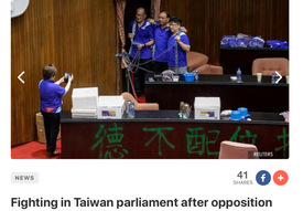 A tajvani törvényhozásban nem szokatlan, hogy a pártok képviselői dulakodással és tiltakozással fejezik ki egymással szembeni ellenérzéseiket.