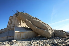 Háfez el-Asszad néhai szíriai elnök ledöntött szobra a Damaszkusztól 88 kilométerre északra fekvõ Deir Atijában 2025. január 14-én, Bassár el-Aszad uralmának december 8-ai megdöntése után.