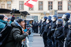 A koronavírus-járvány megfékezését célzó korlátozások ellen tüntetnek Bécsben 2022. január 8-án