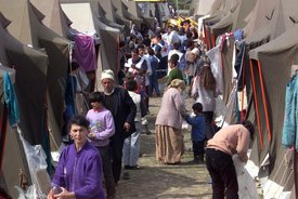 Koszovói albán menekültek 1999 áprilisában az észak-albániai Durres menekülttáborában