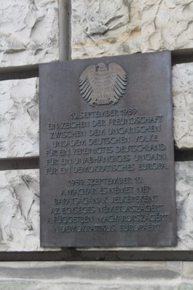 Ma ugyanezt érzi az ember, ugyanitt, mint 1989 tavaszán. A Bundestag falán méretes bronztábla állít emléket az 1989-es határnyitásnak, rajta a felirat: „A magyar és a német nép barátságának jelképeként az egységes Németországért, a független Magyarországért, a demokratikus Európáért” – német és magyar nyelven.