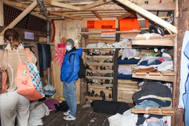 A Schönhauser Allee közelében szembejön a kurfürstendammi koldus ruhája is, amikor belépünk a deszkákból összerótt ingyenes turkálóba. Elviheti mindenki, amit akar, és hozhat is mindent, amire már nincs szüksége. Edényt is, ruhát is. Egyszerre négyen is válogatnak az alig hat négyzetméteres deszkatákolmányban. Szakadt ingek, nadrágok, pulóverek. Nem baj, meg lehet varrni, ki lehet mosni… Ez is Berlin 2025 januárjában, és már távcső sem kell hozzá…