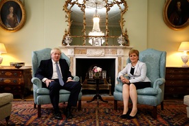 Nicola Sturgeon Edinburghban fogadta a kormányfőt, akit a skót miniszterelnök rezidenciája előtt összegyűlt tömeg egy része pfujolva várt. Nicola Sturgeon úgy vélekedett, az új brit kormányfő Brexittel kapcsolatos tervei ártanak a gazdaságnak Skóciában, amely a bennmaradás mellett voksolt a három évvel ezelőtti referendumon.