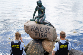 A „Rasszista hal” feliratot festették a dán főváros jelképévé vált Kis hableány szobrára a koppenhágai kikötő bejáratánál