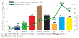 További tény, hogy az előző év augusztusához képest mintegy hét százalékkal, 7000 MW-tal növekedett a német rendszerbe beépített nap- és szélerőművi kapacitás, de idén nyáron az előző év hasonló időszakához (június-augusztus) képest a termelt villamos energia mennyisége két százalékkal csökkent.