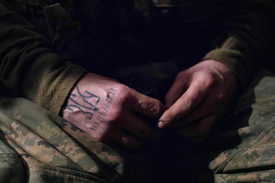 Az ukrán hadsereg 117. nehézgépesített dandárjának egyik tagja pihen a lövészárokban 2024. december 23-án.