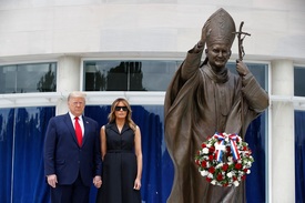 Donald Trump koszorút helyezett el Szent II. János Pál szobránál