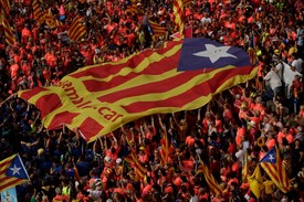 Az Avenida de Diagonal nevű sugárút 6,4 kilométeres lezárt szakaszát ellepte a katalán függetlenséget szimbolizáló sárga-piros csíkos és kék alapon fehér csillagos zászlók áradata.