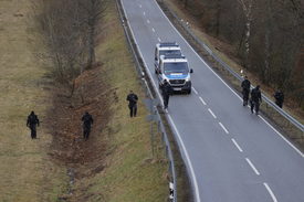 Rendőrök fésülik át az autóút menti területet Ulmetben, ahol közúti ellenőrzés közben lelőttek két rendőrt 2022. január 31-én a hajnali órákban