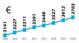 A Német Szövetségi Statisztikai Hivatal adatai szerint az elmúlt években az átlagos havi bruttókeresetek az alábbiak szerint alakultak: