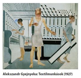 Mindenki a modernitás jegyében tevékenykedett, de egyes művészek egészen különös és egyéni utakon jártak. Például Tatlin, aki megalkotta a III. Internacionálé különös, „csavarodó” emlékművét. Tatlin egy speciális légi biciklit is tervezett, a letatlint (letaty oroszul azt jelenti: repülni), elképzelései szerint ezzel jártak volna be a gyárba dolgozni a jövőben a munkások. A világűrt is fürkészték, Kazimir Malevics használta először a szputnyik kifejezést egy kozmikus jármű megnevezésére. Ízlés kérdése, kinek mi tetszik, mi nem ebből a korszakból, de mindenképpen kiemelkedett az alkotók közül a festő Alekszandr Gyejnyeka. Gyárépítést vagy gyári szövőnőket ábrázoló képein a munka nem hősi tett, hanem álomszerű lebegés egy mozdulatlan, de kifejezetten pasztellszerűen megjelenített ipari környezetben. Gyönyörű, sajátos atmoszférájú festményei mozgósításra alkalmatlanok, hiszen a munkában nem a hősies helytállást, hanem a szépséget, harmóniát keresik. A Vörös Hadsereg fényképészéből és tudósítójából lett festő azon kevés avantgardisták közé tartozott, akik művészeti és fizikai értelemben is túlélték a sztálini terrort. Gyejnyeka 1964-ben Lenin-díjat kapott. Ehhez azért engedékeny lépéseket kellett tennie a klasszikus értelemben vett szocialista realizmus irányába, erről tanúskodik Szevasztopol védelme című, pátosztól csöpögő festménye.