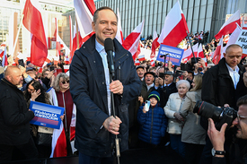 A plakátokról csak annyit: az esztétikai szempontokat tekintve Nawrockié sikerült a legjobban, az alkotók az arányok tiszteletére és egyfajta rendezettségre törekedtek, Trzaskowski plakátja sem volt rossz, de érződött rajta a liberálisokra jellemző, felszabadult szertelenség, illetve az abból következő zavarosság. Mentzen plakátja mindezzel szemben kifejezetten spártaira sikeredett –, adott esetben még a jelölt portréja is hiányzott róla, csak az állt rajta sötétszürke mezőben, hogy „Mentzen, 2025”. Félreértés ne essék, ez tökéletesen illik a Konfederacja purista filozófiájához, EU-kritikusságához és ahhoz a „kockázatos” koncepcióhoz, hogy Lengyelországnak ki kellene egyeznie Moszkvával. Valamilyen formában…