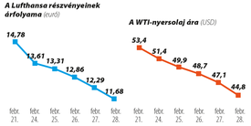 – Harminc-negyven százalékkal kevesebb turista érkezik Franciaországba, mint amire előzetesen számítottunk, ez pedig jelentős csapás a francia gazdaságnak – mondta a hétvégén Bruno le Maire pénzügyminiszter, miután a járvány terjedése ott is felgyorsult. A hatóságok törölték is a vasárnapi párizsi félmaratont, hamarabb bezárták a párizsi mezőgazdasági vásárt – ahogy egy héttel korábban az olaszok is megszakították a velencei karnevált. A Nemzetközi Légi Utaztatási Szövetség arra figyelmeztetett, hogy a megcsappanó utazási kedv miatt az ágazat 29 milliárd dollárnyi bevételtől eshet el, ami a forgalom 4,7 százalékos esését jelenti. Ennél egyébként jóval súlyosabban esett a Lufthansa részvénye a német tőzsdén: másfél hét alatt értékének negyedét elveszítette.