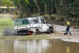 Árvízben elakadt terepjáró az Ausztrália északkeleti részén, Queensland államban fekvõ Cairnsben 2023. december 18-án.