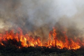 A polgári védelem szerint mintegy háromszáz tűzoltó küzd a lángok megfékezéséért.