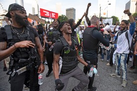 A George Floyd fekete bőrű férfi halála miatt tiltakozó tüntetők Atlantában 2020. június 3-án.