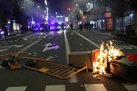 Az ABC című napilap úgy tudja: a spanyol fővárosban neonáci csoportokhoz köthető radikálisok kővel dobálták meg a rendőröket és randalíroztak a városközpontban: barikádot emeltek szemetesekből, amelyeket meggyújtottak, megrongálták az utcabútorokat, az üzletek, bankok bejáratait. Madridban 32 rendbontó került őrizetbe, 12-en megsérültek, köztük három rendőr.