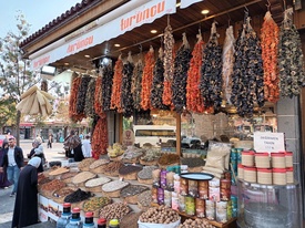 A történelmi háttérhez hamisítatlan keleti hangulat is társul Mardinban. Egymást érik az érdekesebbnél érdekesebb boltok a leginkább belföldről érkező turisták elkápráztatására. Roskadásig telt aranybolt mellett százféle házi szappan közül választhatunk egy illatfelhőben úszó üzletben. Távolabb sáfrányos szír teát árulnak, utána egy utcára kitett pörkölőgép zakatol, a hozzá tartozó üzletben zsákszámra áll a pisztácia és a viccesen török Viagrának nevezett, kék színű cukormázzal bevont mandula. A legszokatlanabbak azonban mégiscsak a szír borüzletek ezen a vidéken, ráadásul olyan formabontó címkékkel operálnak, hogy azt bárhol megirigyelnék. A kirakatban díszelgő palackokon békésen megfér egymás mellett Jézus Krisztus, Cher és a Mona Lisa portréja a hagyományos címkék társaságában. Az egyik ilyen üzlet tulajdonosa büszkén újságolja, hogy saját maga készíti a bort az egyik környékbeli faluban, s nem csak borral, hanem hibiszkuszlikőrrel is szolgál azoknak, akiknek ez nem jelent vallási alapú problémát.