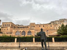 A boltívekkel, teraszokkal, elegáns kőkorlátokkal díszített káld katolikus püspöki palota Mardinban