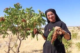 A midyati Szűz Mária-templom és kertje pengésdrót mögött. A szőlőt pusztító kecskenyájak ellen csak így tudnak védekezni a kolostorok