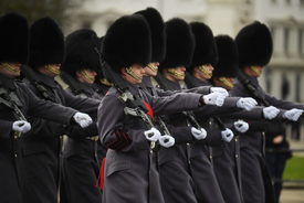 Õrségváltás a londoni királyi rezidencia, a Buckingham-palota elõtt 2022. február 6-án. MTI/EPA/Neil Hall