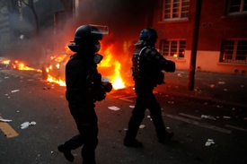„Mindenki utálja a rendőrséget”, „anti, anti, antikapitalisták” felkiáltással az úgynevezett black blocs csoportok barikádokat is emeltek és utcakövekkel megdobálták a rendőröket, akik könnygázzal válaszoltak.