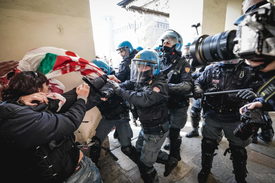 Utcai harcok is zajlottak Torinóban, ahol a diákok menetéből kivált négyszáz fős csoport összecsapott a rendőrökkel a városi rendőrkapitányság épülete előtt. Később az egyetemi vezetés és a RAI közszolgálati média épületéhez vonultak, és betörtek a torinói Mozi Múzeumba.