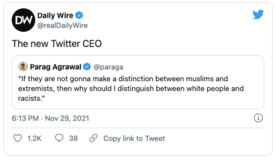 (Ian Haworth: ‘Why Should I Distinguish Between White People And Racists’: New Twitter CEO’s 2010 Tweet Comes Under Fire, The Daily Wire, 2021. 11. 29.)