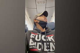 A Delta Airlines egyik utasa videófelvételt készített arról, amint a légitársaság egyik képviselője letessékeli egy járatáról és azzal fenyegeti, hogy ha nem engedelmeskedik, felkerül a repüléstilalmi listára. Az egyébként színes bőrű fiatalember bűne az volt, hogy egy „Joe Biden kapja be” feliratú pulóvert viselt. A TikTok közösségi portálon Jauneil Brooksként bemutatkozó utasnak a Delta utaskísérője azt mondta, beszélt a „biztonságiakkal”, és nem elég, hogy le kell szállnia gépről, de mindezt úgy, hogy előtte kifordítja a pulóverét – nyilván azért, hogy a többiek ne olvashassák el a rajta található feliratot. A hölgy mindezt azzal magyarázza, hogy „ez a Delta szabályzata”, és ilyen ruhadarabot „nem lehet viselni”.