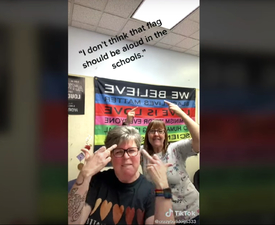 A progresszív Oregon állam iskolakerületének két alkalmazottját kényszerszabadságra küldték, miután egy TikTok-portálon közzétett videóban alpári módon nyilvánítottak véleményt azokról, akik nem támogatják a progresszív elképzeléseket. A klipet egy osztályteremben rögzítették egy szivárványos zászló előtt, amelyen felsorolják a progresszív-szélsőbaloldali, úgynevezett woke propaganda legnépszerűbb jelmondatait a BLM-mozgalomtól az LMBTQ-közösségen át a feministákig.