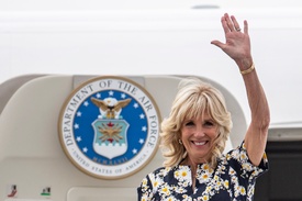 Jill Biden, Joe Biden amerikai elnök felesége a pozsonyi repülőtérre érkezik 2022. május 7-én. MTI/EPA/Martin Divisek