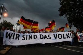 Tudja, ki áll a kormány élén? Egy volt Stasi-ügynök [az NDK-s titkosszolgálat ügynöke]. Aki mindig kommunista volt, soha nem lesz demokrata. De mi tudjuk, mi a demokrácia. Demokráciában és szabadságban éltünk. Azért állok itt, mert nem vagyok olyan buta, mint a nyugatnémet honfitársaim. Tudom, mi az elnyomás, mi a háború. Megjártam a balkáni háborút. Tudom, mi a gyilkosság és mi a muszlim elnyomás. Ezt már az imént elmondtam. Azok a muszlimok, akiket ide beengedtek és be akarnak engedni, nem ugyanazok a liberális muszlimok, akik évtizedek óta itt élnek és dolgoznak. Ismerem a Koránt, akárcsak a Bibliát és a Tórát, ezért tudom: ezek az újonnan érkezők minden hitetlent meg fognak ölni.