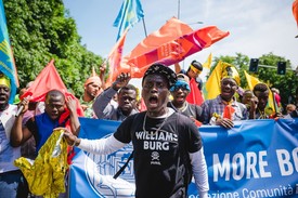 A Colosseum közeléből induló tüntetésen a szervezők szerint legalább ötezren vettek részt. Többségében afrikai migránsok, közöttük etiópiai és eritreai állampolgárok vonultak fel, akik Olaszországban az elsők között jogosultak menedékkérelemre. A demonstráción az ingyenes lakhatásért küzdő és gyakran üresen álló épületeket elfoglaló baloldali olasz mozgalom is részt vett.