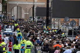 A vatikáni Szent Péter téren állnak sorban tisztelõi, hogy leróják kegyeletüket a Szent Péter-bazilikában felravatalozott Ferenc pápa elõtt 2025. április 25-én.