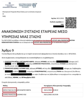 A Kaili és Giorgi nevén futó Estate Aria Properties-t néhány nappal a letartóztatásuk előtt, november végén jegyeztették be a görög bíróságon. Székhelye egy, a Kaili tulajdonában lévő athéni lakás egy luxusbérház ötödik emeletén. A görög ügyészség szerint a cég nyilvánvalóan pénzmosásra szolgált, Kaili ugyanis a szerződések szerint irreálisan alacsony áron vásárolt ingatlanokat, miközben a valódi vételár „zsebből zsebbe” vándorolt. Kaili élettársa már ezekben az ügyekben is tett részben beismerő vallomást.