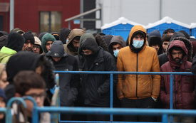 Az Európai Unióba igyekvõ migránsok Kuznica Bialostocka-Bruzgi lengyel-fehérorosz határátkelõnél, a fehéroroszországi Grodno környékén 2021. november 17-én. MTI/EPA/BELTA/Makszim Gucsek