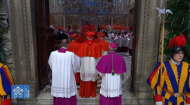 Megkezdődött a Vatikánban a pápaválasztó konklávé, a 133 bíboros kettesével vonult be szerdán a Sixtus-kápolnába a Mindenszentek litániáját énekelve.