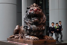 A hongkongi tüntetők radikális csoportjai azért támadták meg a londoni központú multinacionális óriásbank helyi fiókjait és a hongkongi székház főbejáratánál álló oroszlánokat, mert a HSBC befagyasztotta egy, a tüntetők jogi költségeinek fedezésére adományokat gyűjtő szervezet számláját, rajta 70 millió hongkongi dollárral (2,6 milliárd forint). Elkoboztak 130 ezer dollár készpénzt is.
