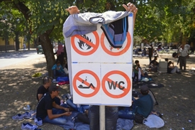 Helyszíni tudósítások szerint a campus parkjában sátrak állnak, amelyekben mintegy negyven migráns él.
