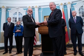 A ceremóniát az amerikai külügyminisztériumban tartották, Thomas Shannon ügyvezető külügyminiszter-helyettes és Jens Stoltenberg NATO-főtitkár jelenlétében. Dusko Markovic miniszterelnök történelmi napnak nevezte a NATO-csatlakozás napját.